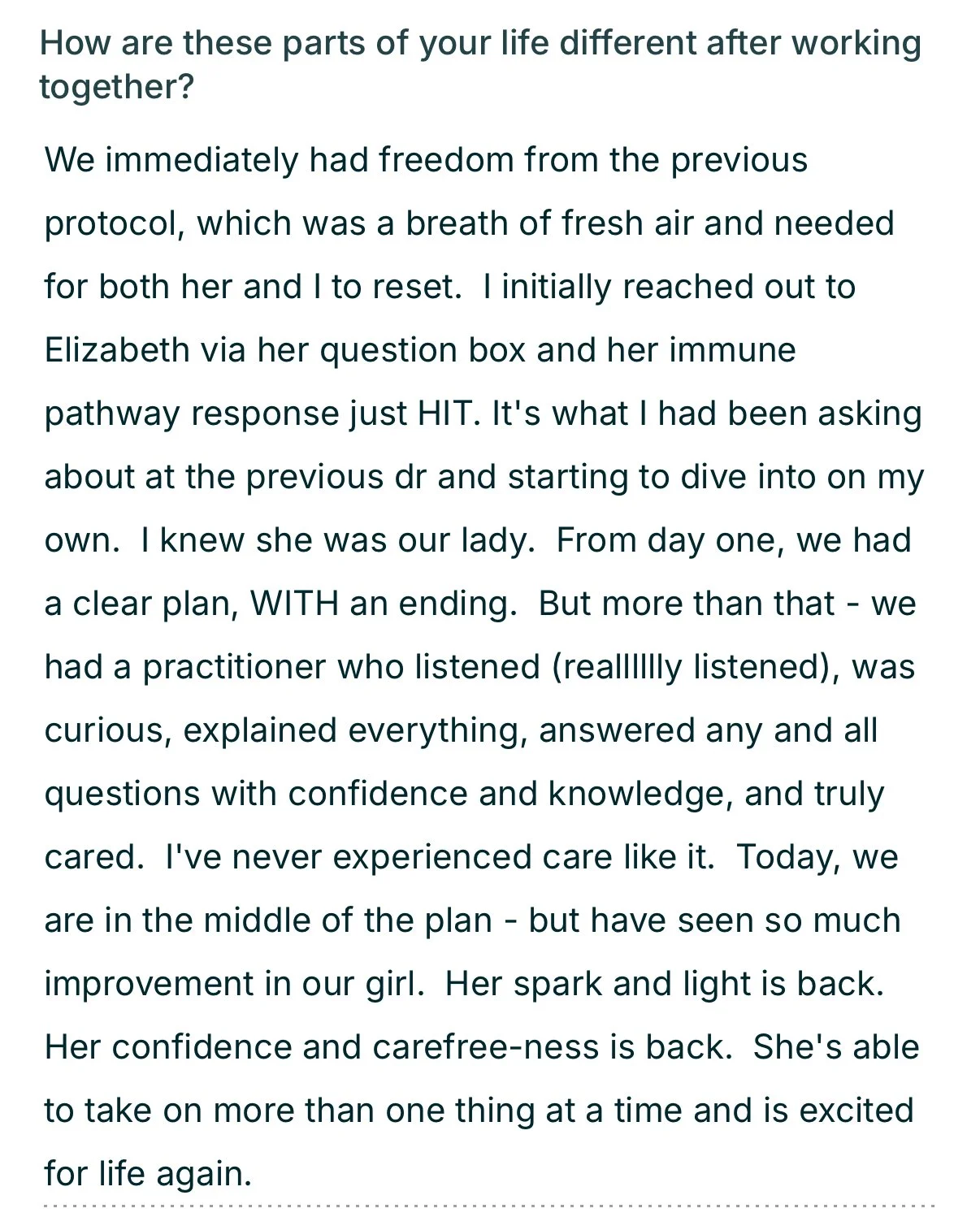 We know this road can feel scary and lonely. We also know - from walking it with many families - that children can recover, stabilize, and return to themselves when their immune systems are supported appropriately.
